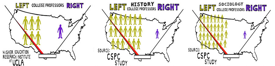 - Even colleges that identify themselves as Christian have almost 4 liberals to 1 conservative. +